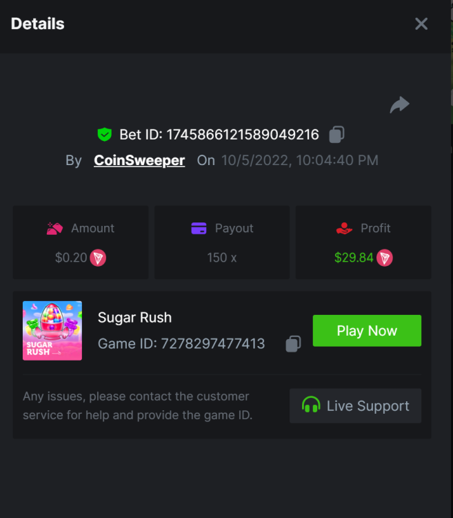 7. hot volcano - https://bc.game/sd/?sd=10SYOIO7ZEO93N - 1513.15x Bet ID: 1743939335900390528 camno de chilli - https://bc.game/sd/?sd=10SYQ0QXTML2QB - 70 x Bet ID: 1743940869443623431 candy 100x - https://bc.game/sd/?sd=10SYQGYJ50T3BN Bet ID: 1743941303908381191 Wolf Hiding - Bet ID: 1743934738919953597 - 500.20x https://bc.game/sd/?sd=10SY237RTTWDfN