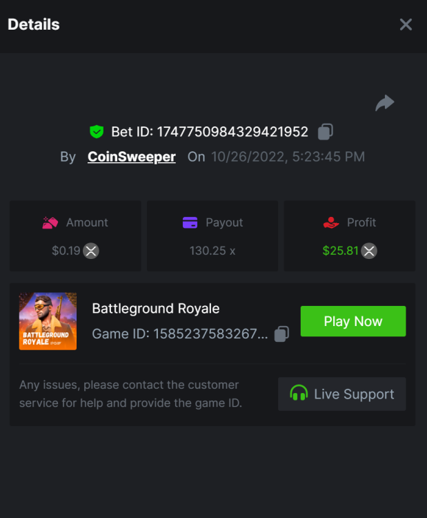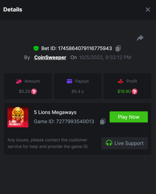 5. https://bc.game/#/sd/10UF8OAHLT0XLF - 375.0253x https://bc.game/#/sd/10UF45UTXGV6DV - 137x https://bc.game/#/sd/10UF4L9PN0PPUB - 115x https://bc.game/#/sd/10UF5LQ2USBBBN - 110x https://bc.game/#/sd/10UF9BZOYZUTCJ - 523.9 x https://bc.game/#/sd/10UFAK7HTDUWPF - 171.8x https://bc.game/#/sd/10UFBOWUNK3DAR - 95.4x https://bc.game/#/sd/10UF7SLOKLRTOZ - 50x - Bounty https://bc.game/#/sd/10UFBXW23LF9JN - 116.5x https://bc.game/#/sd/10UFCM2WB6JWUR - 190x https://bc.game/#/sd/10UFD5FS7F0QVN - 136.85 https://bc.game/#/sd/10UFDPDK1Q83KJ - 150x https://bc.game/#/sd/10UFE79T53LGR7 - 302.7x