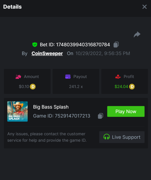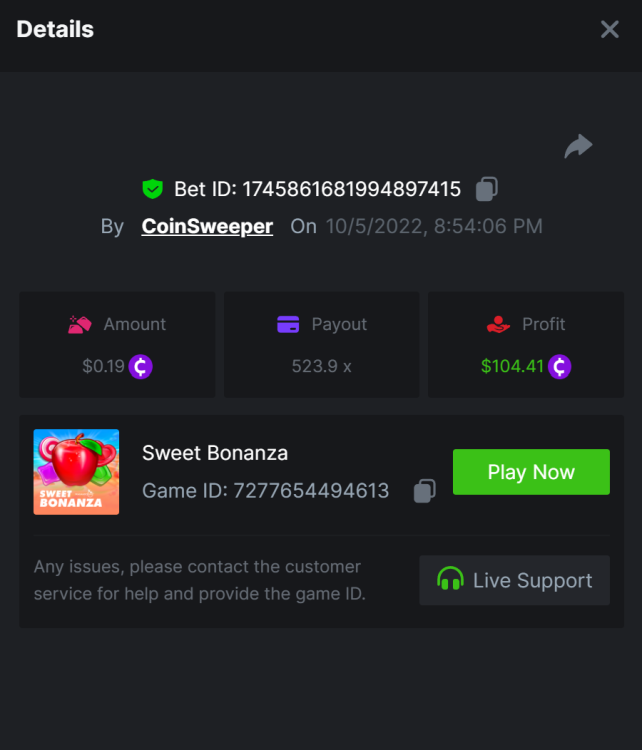 10. https://bc.game/sd/?sd=10RTDCDZ0XHNGZ - 227x - Sweet Bonanza https://bc.game/sd/?sd=10RTF5E5MGWQHF - 291x - Gates https://bc.game/sd/?sd=10RTGQW04MN47N - 248x - starlight Princess https://bc.game/sd/?sd=10RTHQ3E91YQZ7 - 521.5x - Bigger Bass https://bc.game/sd/?sd=10RTIYXA189BMB - 268.3x - Dog house megaways. https://bc.game/sd/?sd=10RTLJ5Z4H5637 - 363.1x - sugar rush https://bc.game/sd/?sd=10RTTJ7BB4728J - 517x - Gems Bonanza https://bc.game/sd/?sd=10RTKOWB5YOZ6B - 132x - Sweet Xmas https://bc.game/sd/?sd=10RTOHZRATUZ9V - 140x - Big bass https://bc.game/sd/?sd=10RTIE66RKNUOJ - 180x - Big Bass Splash https://bc.game/sd/?sd=10RU0W6D5FCDN7 - 1972.1x - Sweet Bonanza https://bc.game/sd/?sd=10RTUI1885YO0J - Sweet xmas - 166x https://bc.game/sd/?sd=10S0J45ENO6MFN - 869x - Big Splash https://bc.game/sd/?sd=10S0JHURPHY5UB - 190x - big bass Bounty - https://bc.game/sd/?sd=10RTNTJK2DG45V