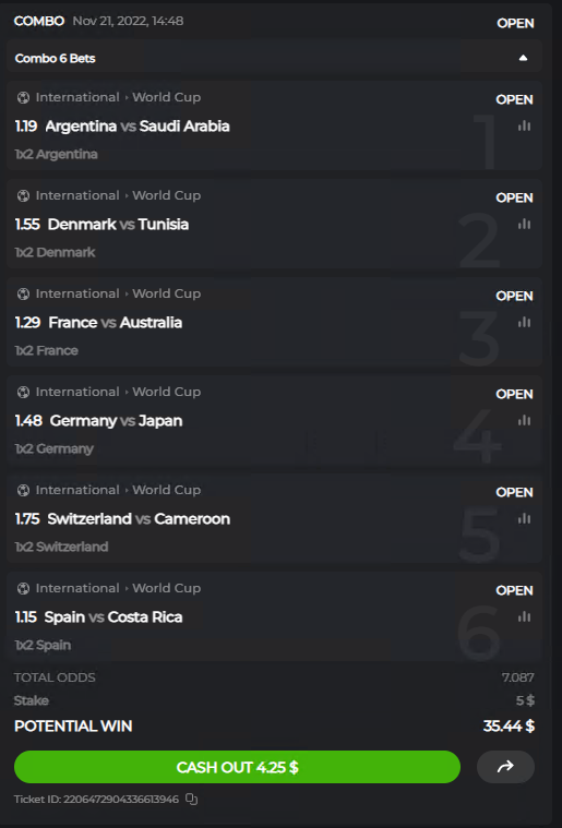 Strange.. CS:Go is eShooter. Should count. Not sure about Counter Strike. Guess not. And soccer was normal soccer? NBA was normal NBA? Those do not count. Place any pre-match or live bet on any match offered in sections FIFA, NBA 2K, eCricket, Rocket League, eFighting, eShooter, eTennis, eBaseball.