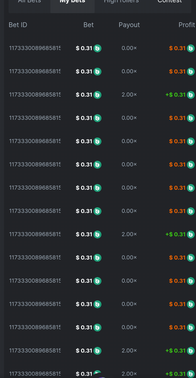 7. Hi, I lost my bet of consecutive orange x3, therefore I can't submit links due to page limit of showing only 50 bets history, but I have my bill of transaction. I was able to get 3x oranges when balance went down to 3.22$ @ 0.31$ min bet. 3.22+0.31$=3.53$ - sequence 1 3.53$+0.31$=3.84$-seq 2 3.84$+0.31$=4.15$-seq.3