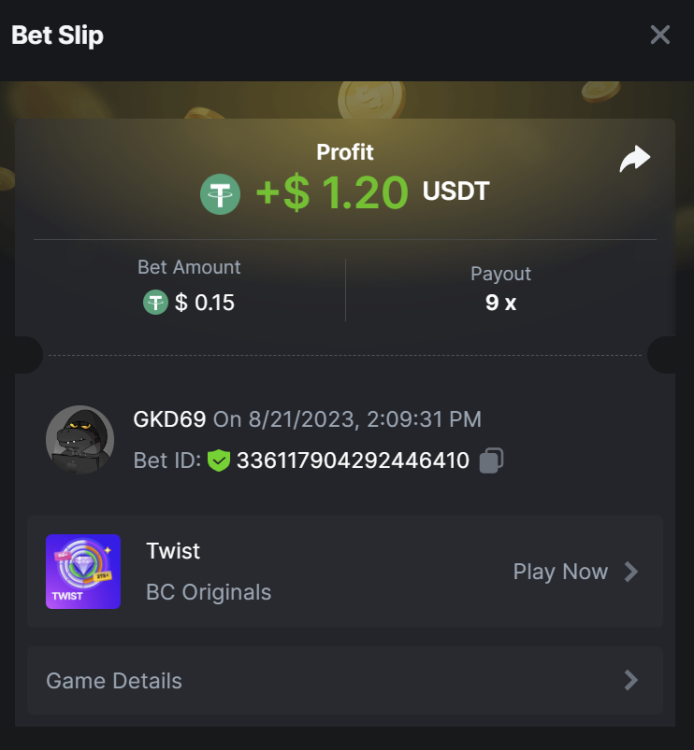 2. https://bc.game/#/sd/11PCPU9N7IY2QV BET ID: 52978331402337152