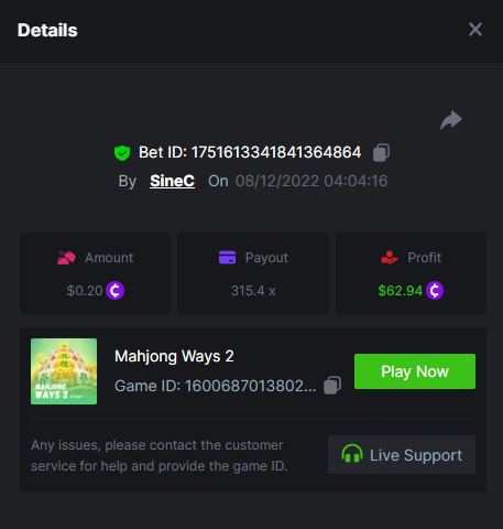 The Great Icescape 205.28 https://bc.game/#/sd/10YVO7BEZ5ATQR Santa's Gift Rush 150.166 https://bc.game/#/sd/10YWU6U2T1RPJN Jack Frost's Winter 108.4 https://bc.game/#/sd/10YRC44K0P2XAR Mahjong Ways 113.8 https://bc.game/#/sd/10YSJBQTY6AIOJ Mahjong Ways2 315.4 https://bc.game/#/sd/10YSKQ4VSJ7CIB Treasures of Aztec 123.4 https://bc.game/#/sd/10YSN53NSJFBBN Lucky Neko 178.6 https://bc.game/#/sd/10YVRH3FPEV7KJ Buffalo Win 146.5 https://bc.game/#/sd/10YSGUHGUABCIB Wild Bandito 161.85 https://bc.game/#/sd/10YSDHW2TUSKYB Dreams of Macau 103.5 https://bc.game/#/sd/10YRXZCWTCV11V