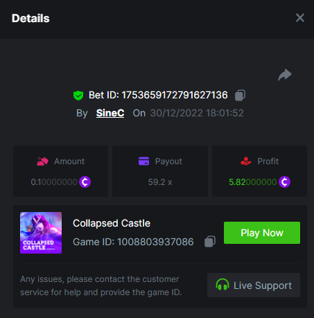 Treasure-Snipes: Christmas 60 https://bc.game/#/sd/110C4GPIJS3GNN Christmas Reach Bonus 16 https://bc.game/#/sd/110C5DFYMMQK2B Ice Mania 21 https://bc.game/#/sd/110CIN4WDGZYTV Collapsed Castle 59.2 https://bc.game/#/sd/110CJ2XKDYISK3 Fruit Super Nova 10 https://bc.game/#/sd/110CJIO2102J9V