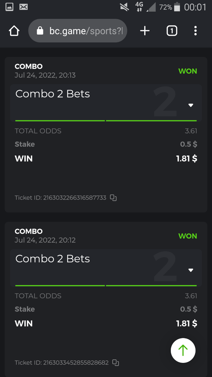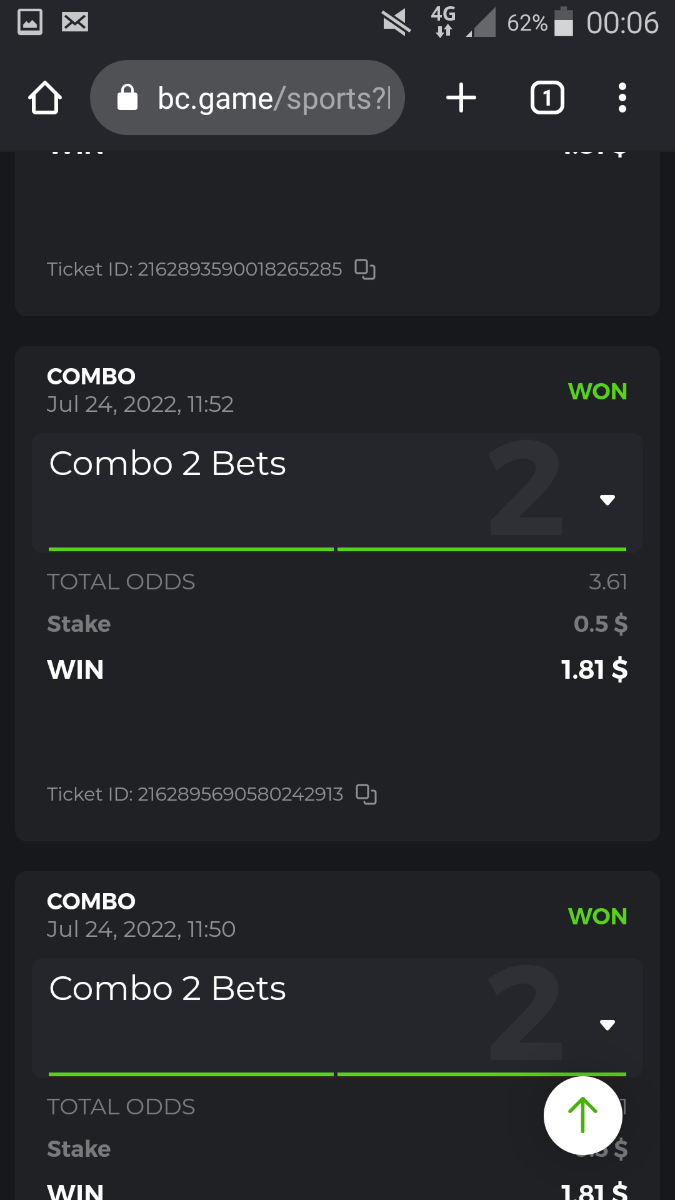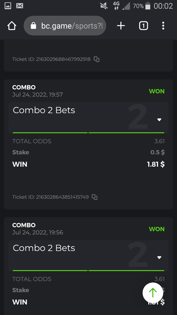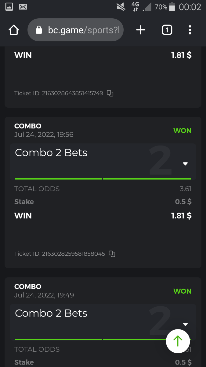 • To participate, post your Ticket ID, along with your Parlay link, as a reply to this thread as follows: Link bet: https://bc.game/sports/?bt-path=%2F%3FbtBookingCode%3D561A9D1 + Ticket ID 2126602890796736992