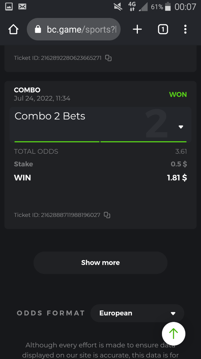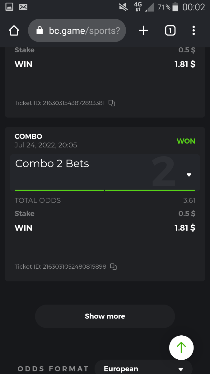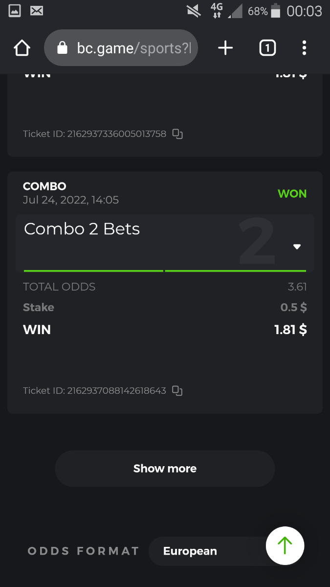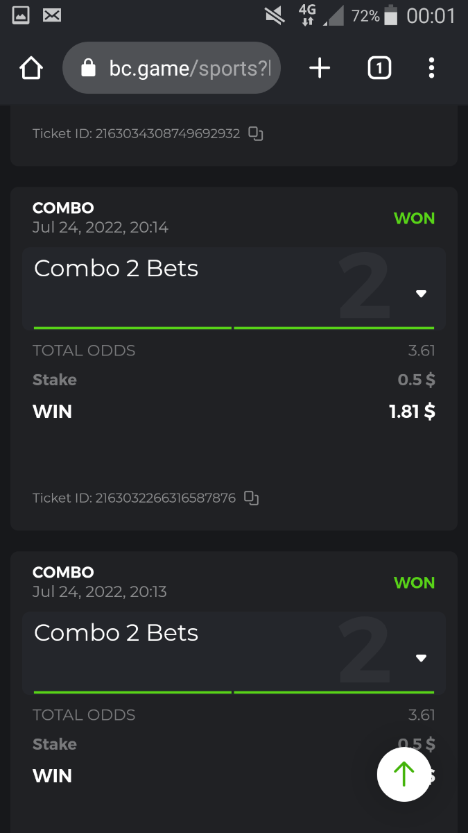 • To participate, post your Ticket ID, along with your Parlay link, as a reply to this thread as follows: Link bet: https://bc.game/sports/?bt-path=%2F%3FbtBookingCode%3D561A9D1 + Ticket ID 2126602890796736992