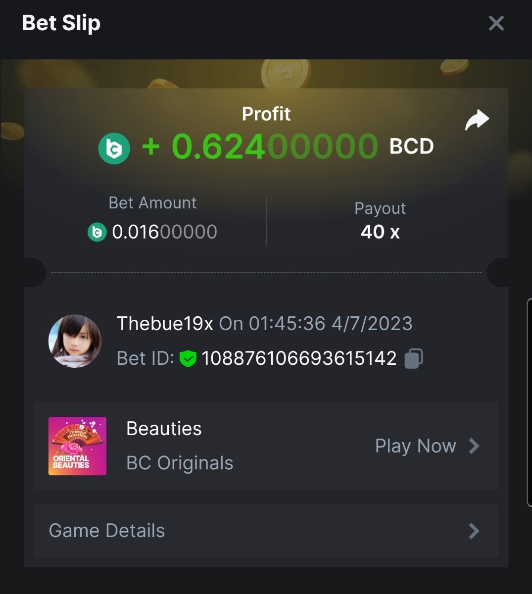 Moderator Giandreas Posted July 3, 2023 Moderator Share Posted July 3, 2023 Read Carefully Before Start To Hunt Forum Daily Challenges #285 oriental beauties Hunt : Win the highest pay out Min Payout requirement 30x Min Level 4️Duration Starting : Now End time : 23.59 UTC Time How to Join? Make screenshot + paste your bet link + UID or Profile link Any coin, with min bet 0.01 USD is allowed (jb/bb/bcl not allowed)Reward Prizes 1st Place.....$7 BCD 2nd Place.....$5 BCD 3rd Place.....$4 BCD 4th Place.....$3 BCD 5th Place.....$2 BCD 🏵 Winners will be announcing next day after Roll Point! Link to comment Share on other sites More sharing options...