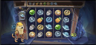 When the feature starts the reels will fade away and a mining cart will come into view the dog will jump in to the cart and move into the mine