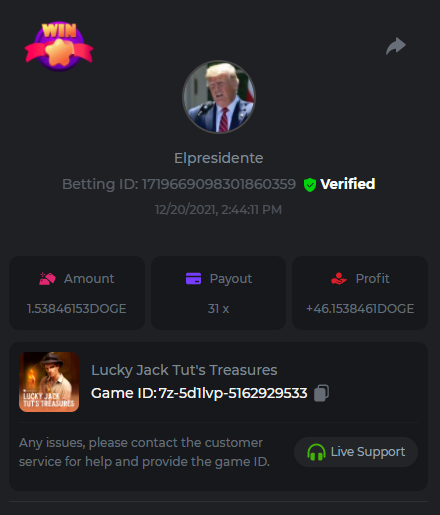Lucky Jack                ID de la apuesta: 1719189821629599239