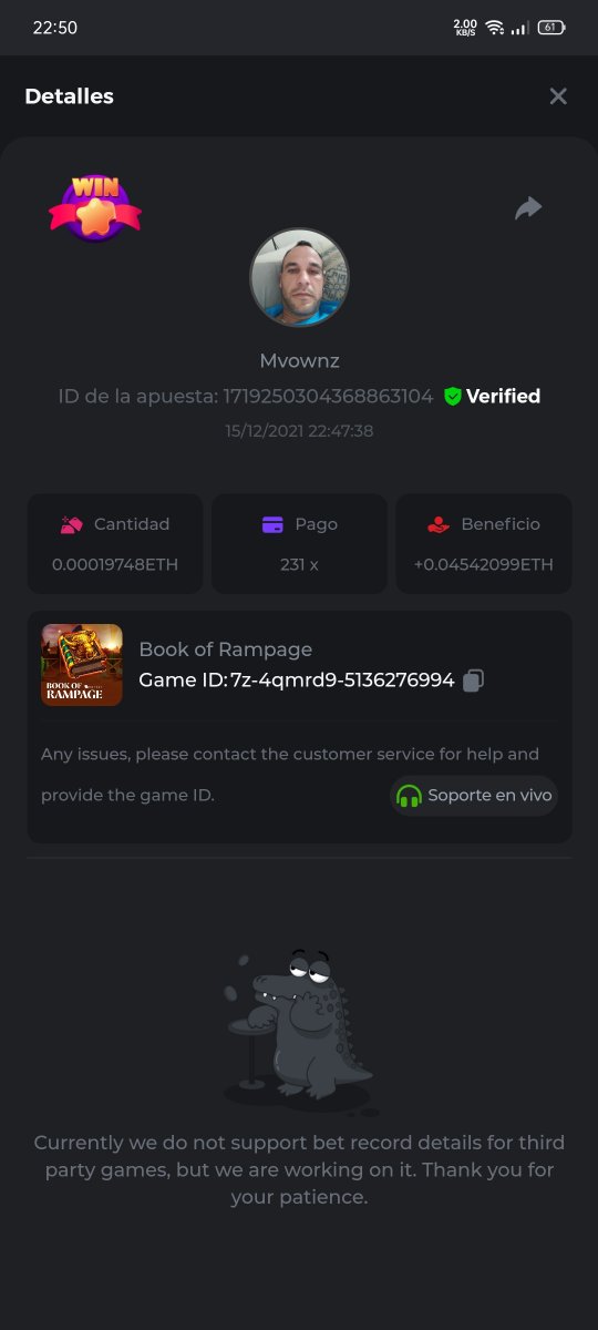 Book of Rampage   ID de la apuesta: 1719342208179236480