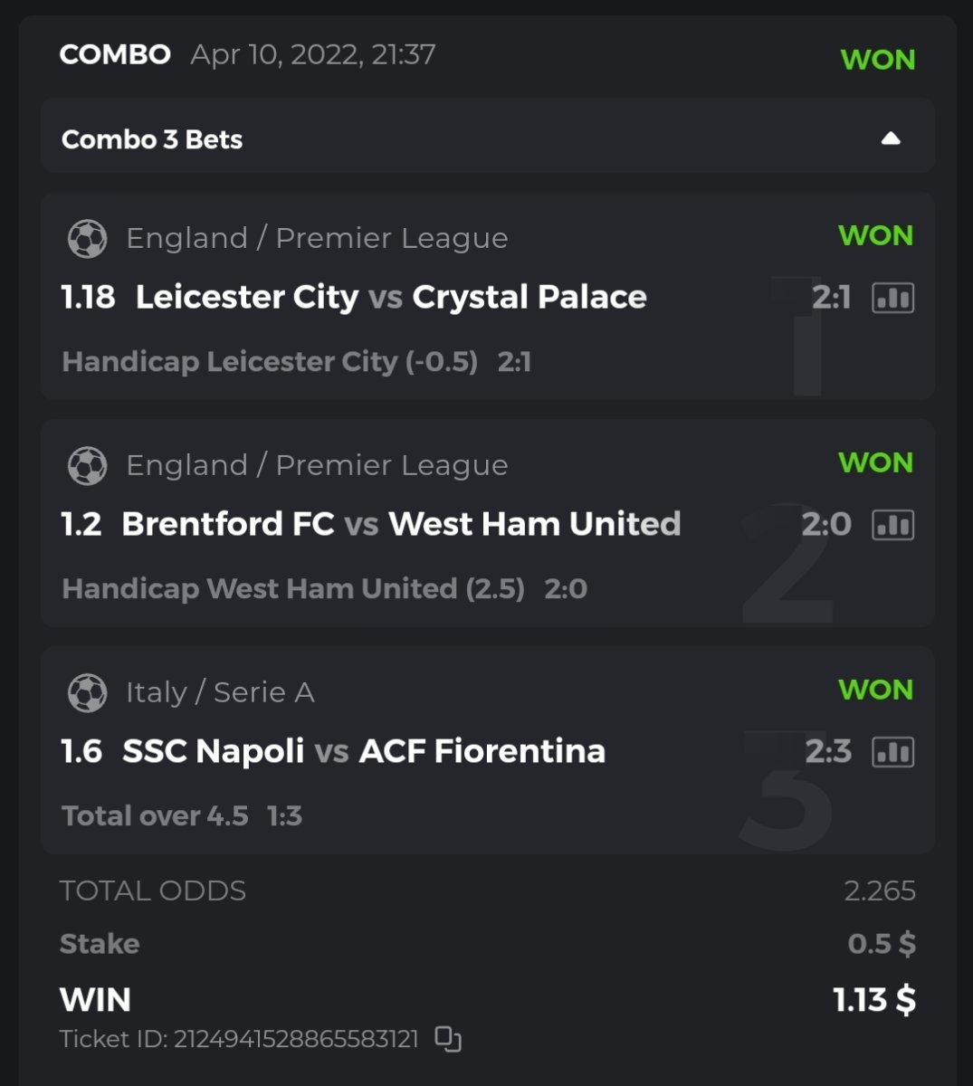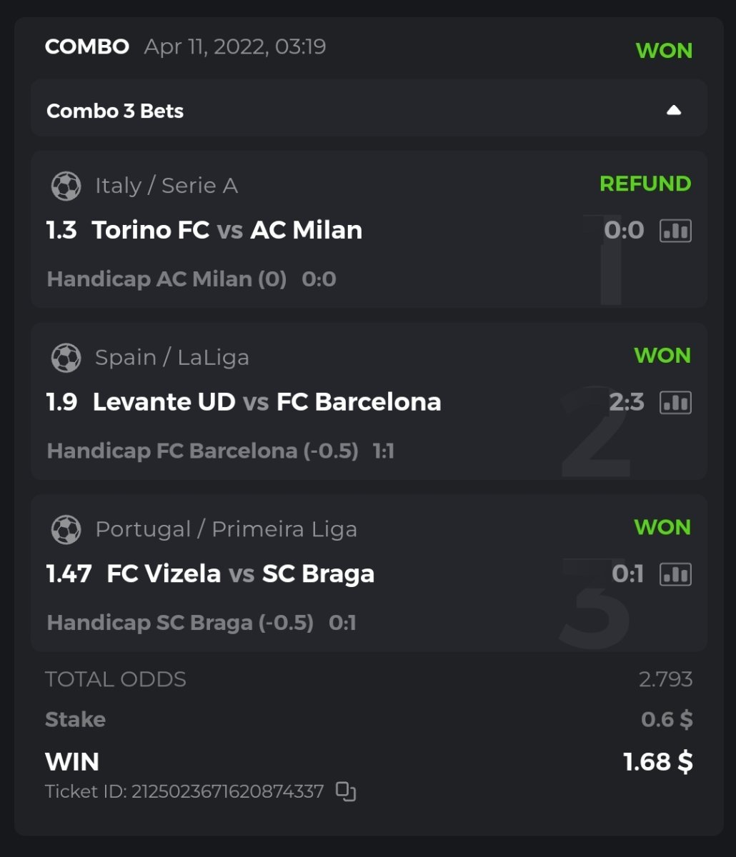 I posted the bets placed but open, not won, so I deleted them